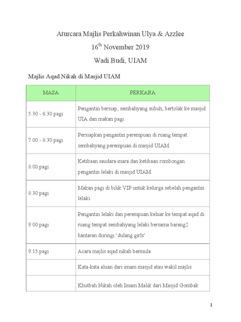 Aturcara Majlis Perkahwinan Ulya Pdf
